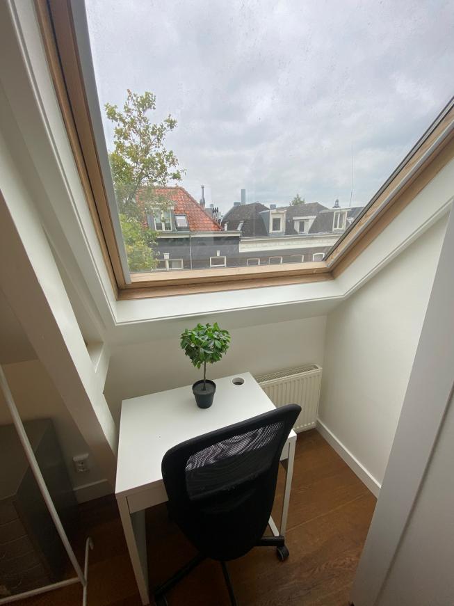 A 50m2 apartment on the fourth floor in the heart of the popular area the Pijp. The apartment includes two flatshares with own kitchen, shared livingroom, bathroom & toilet. The flatshares are all furnished and equipped with an electric system and self-controlled central heating, window covers, wooden floor and spotlights / lights.