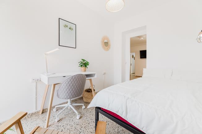 Each of the 4 bedrooms is individually furnished with a comfortable double bed (120x200), a desk with a chair, air conditioning, and a closet. Every bedroom also has its own lock for added privacy. The newly updated bathroom is unisex and comes with a shower, toilet, and sink, providing everyone with enough comfort and personal space.