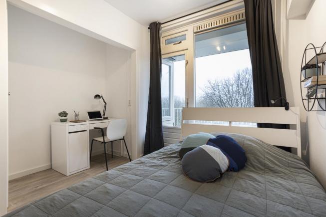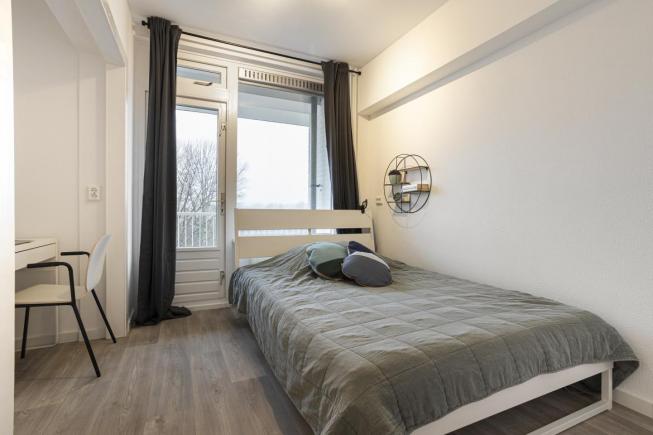 We are offering a completely renovated 3-person flatshare apartment. Are you looking for a brand new, modern and fully furnished apartment in Rotterdam that is conveniently located within the lively neighborhood ‘Het lage land? Then stop looking! Thanks to the central location of the apartment you will find supermarkets, shops, public transportation and everything else you might need within walking distance. Furthermore, the train station and shopping mall Rotterdam Alexandrium are within 7 minutes biking distance. Lastly, the beautiful park: Kralingse bos is only 5 min by bike. The apartment is located on the first floor of the building and can be accessed via a shared entrance. There are 3 flatshares, a bright and modern furnished living room, fully equipped contemporary kitchen with modern appliances, luxurious bathroom and a separate toilet. The flatshares are equipped with a bed, closet, desk, desk light and desk chair. Furthermore, the apartment has central heating and the windows are fitted with double glazing. Also, the apartment features not one but two cozy balconies to ensure you will always be able to enjoy the sun.