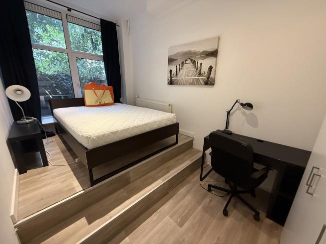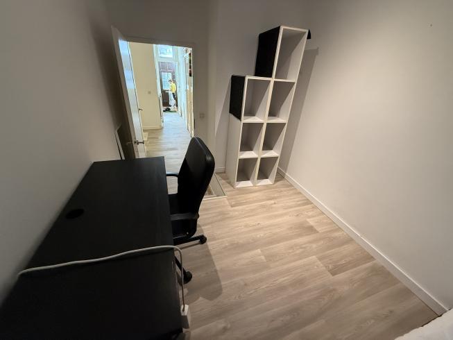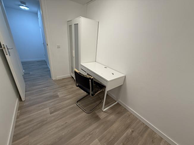 This completely renovated 102m2 flatshare apartment for three with: living, kitchen, bathroom & toilet. The apartment is all furnished and equipped with curtains, beds, desks, desk chairs and desk lamps.